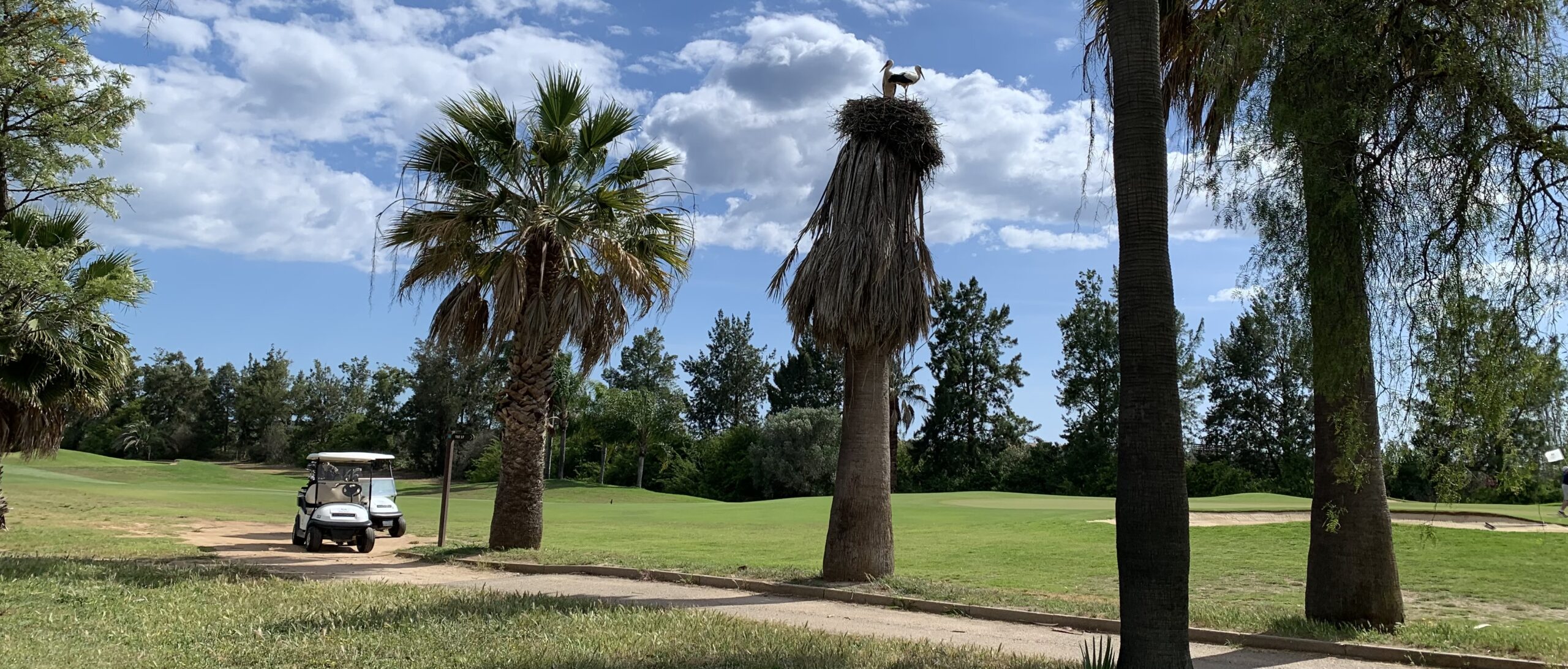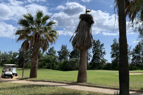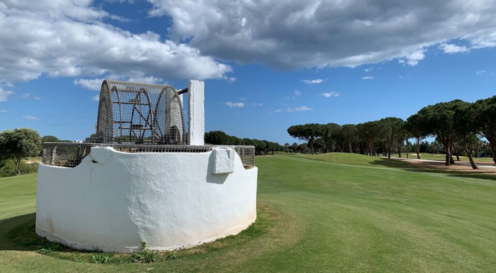 Po prawej zwykle czynna jest fontanna, od której bije zapach świeżej, rozbryzgującej się wody. Tak nas wita ostatni dołek na polu – dość długie PAR 4. Pierwsze uderzenie lepiej oddać nieco w lewo, aby uniknąć drzew po prawej na lekkim zakręcie fairwaya.